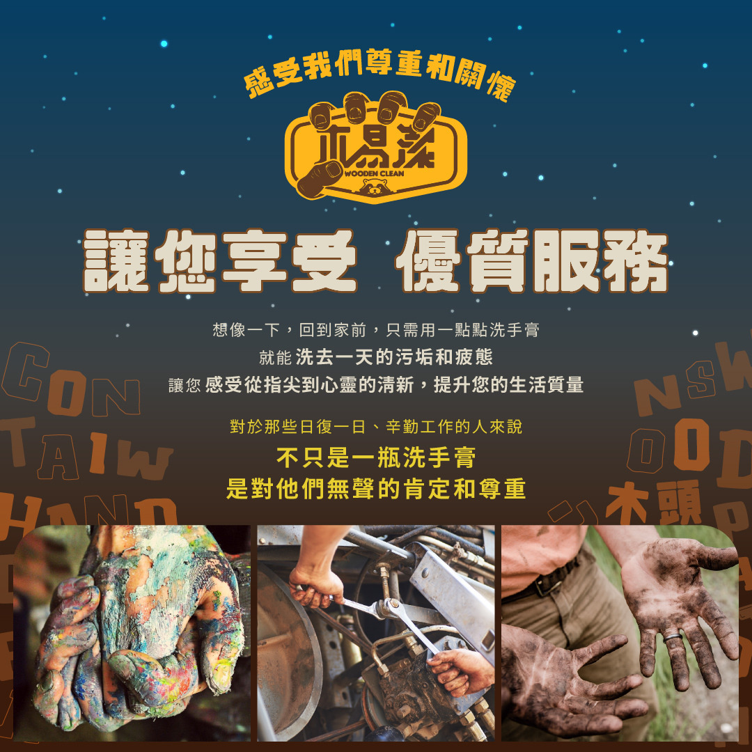採用百分之百純天然木材加工研磨製成,細小如粉的纖維有效深入手部紋路隙縫吸附油污,固定粒徑大小洗手更舒服,還能達到最好的清潔效果,自然成分 溫和潔淨。